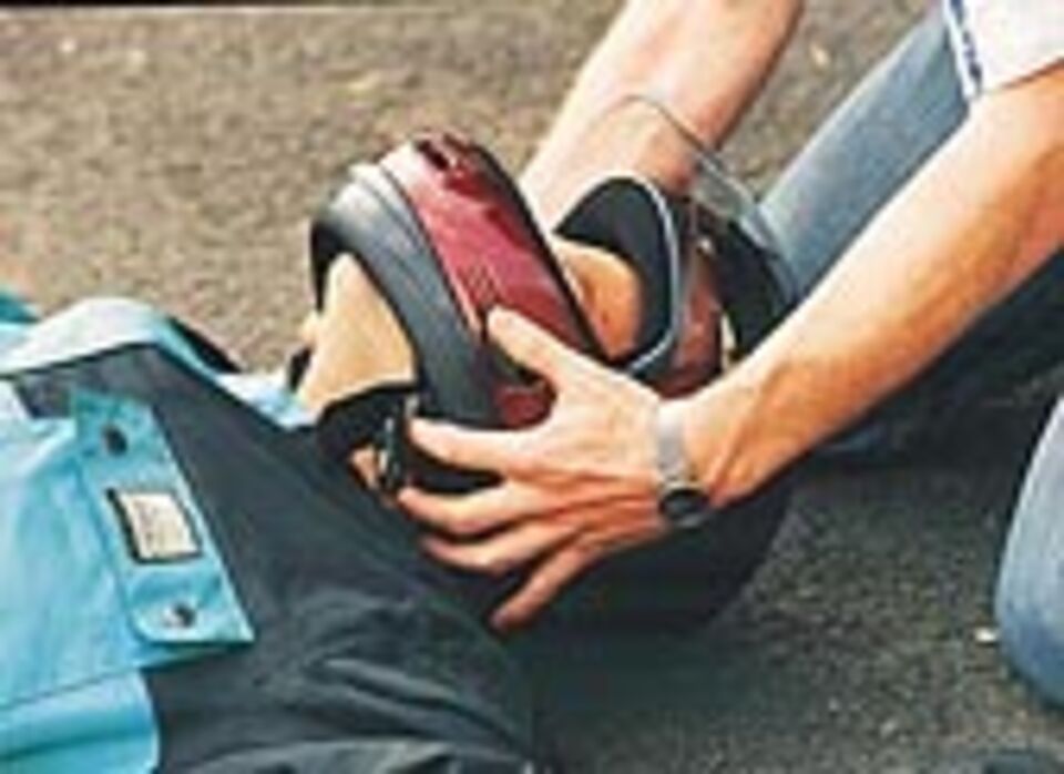 Da es verschiedene Helmtypen gibt, müssen die nachfolgenden Maßnahmen evtl. entsprechend dem Helmtyp abgewandelt werden. Dieses Verfahren des Helmabnehmens soll u. a. verhindern, dass bei Vorliegen einer Halswirbelverletzung versehentlich eine Verschlimmerung der Unfallfolgen eintritt. Die Helmabnahme sollten Sie, wenn möglich, zu zweit vornehmen.